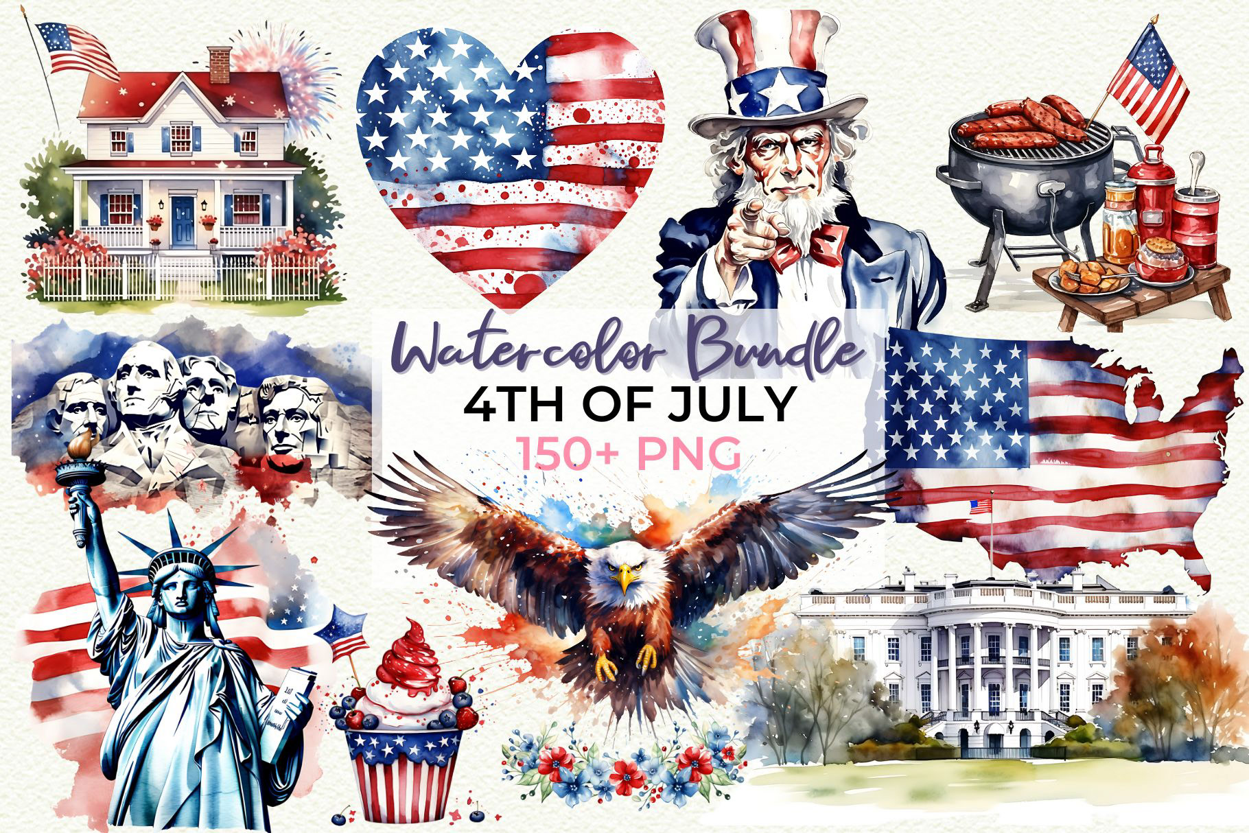 Over 150 high-quality PNG illustrations (300 DPI, transparent background)