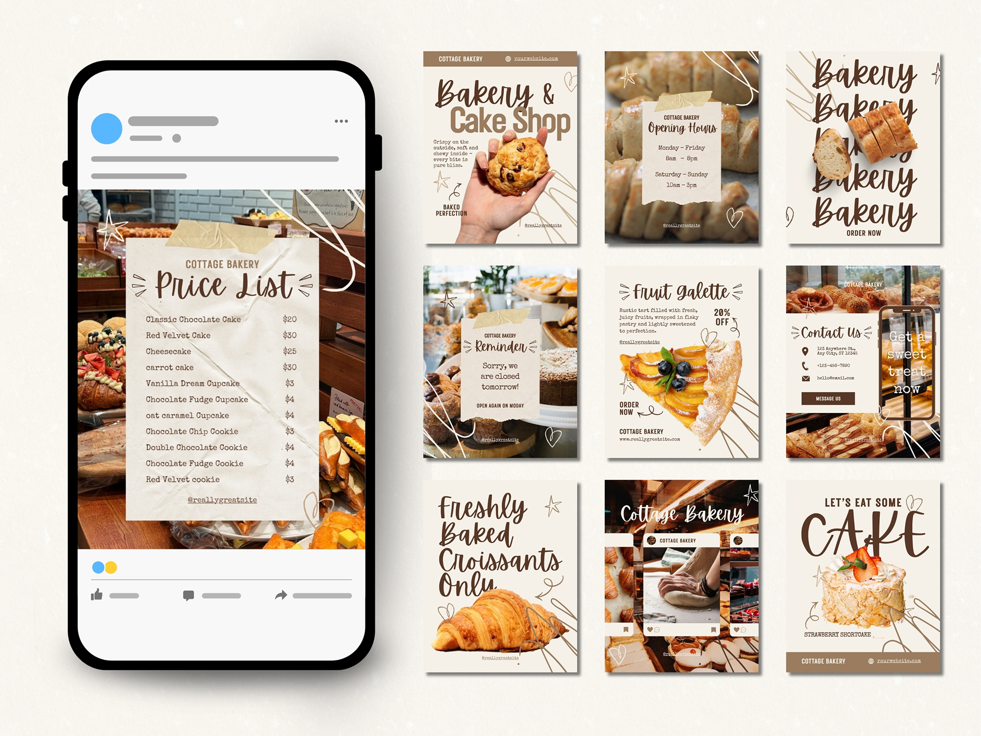 A cohesive brand identity and social media design system that creates a warm, recognizable presence for the bakery and ensures consistent visuals across print and digital platforms