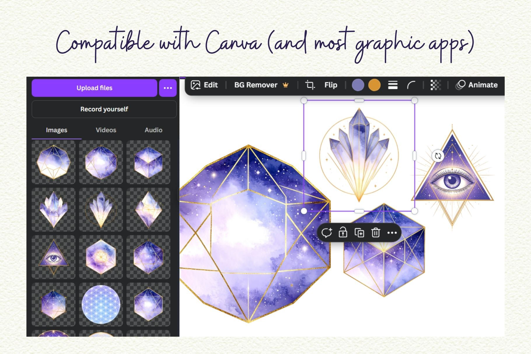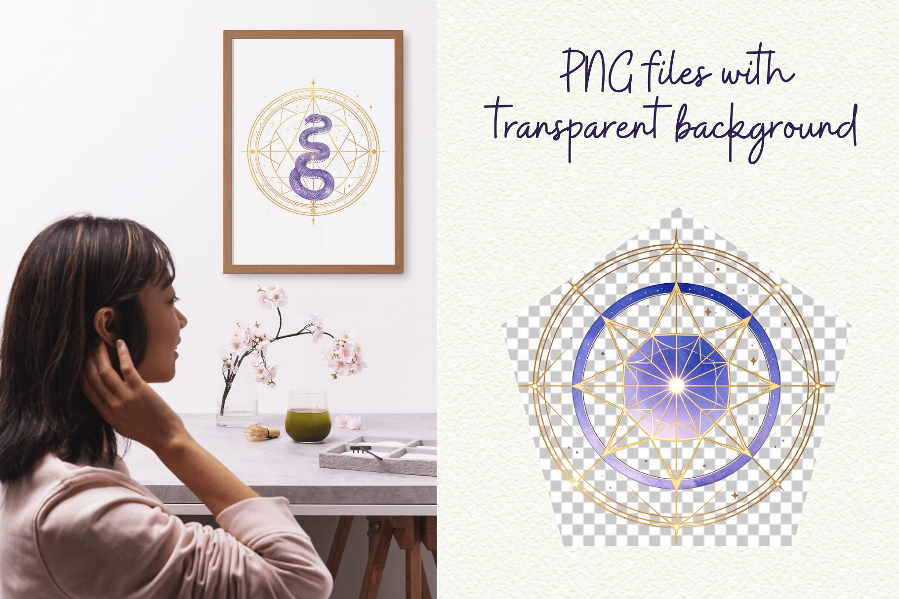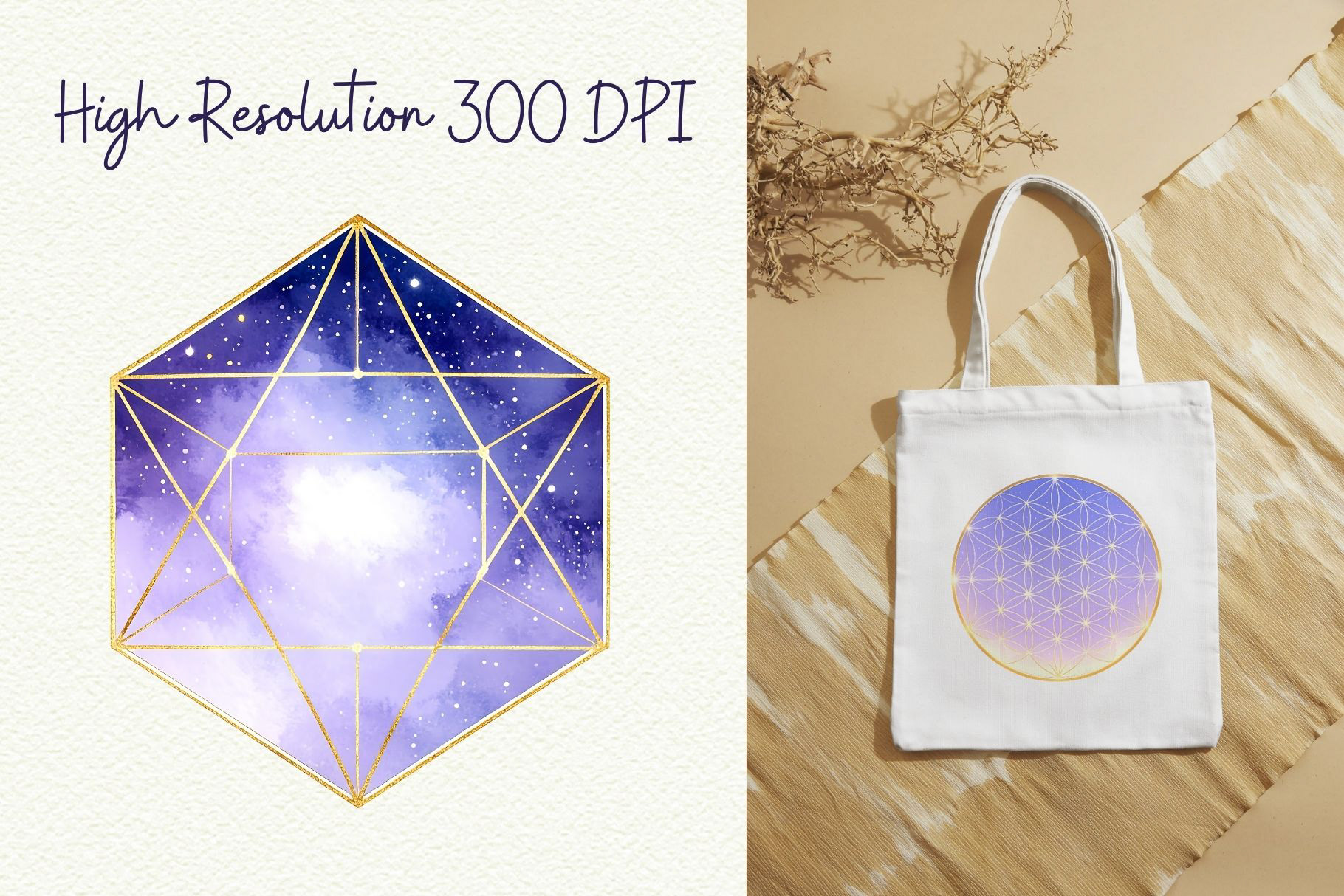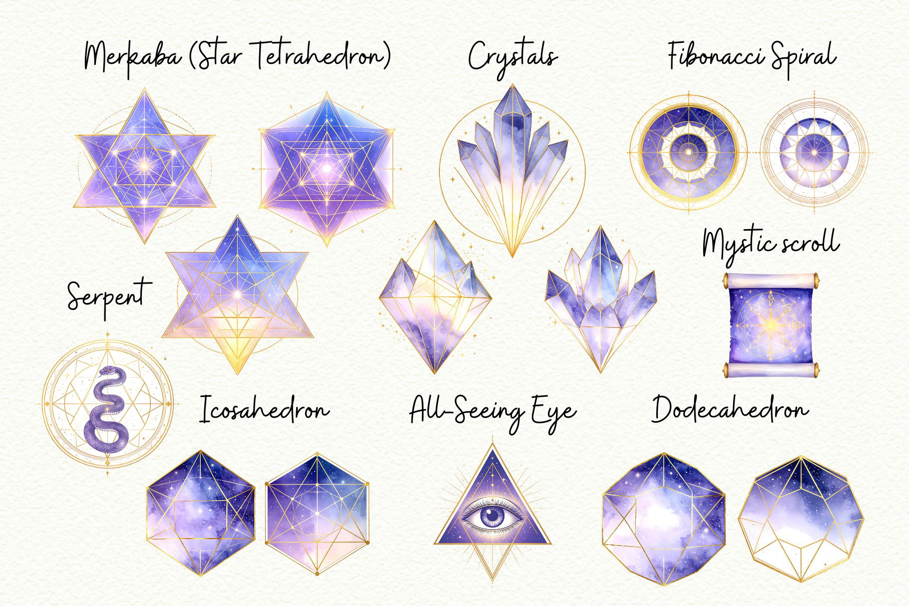 Add a cosmic glow to your creative work with this Celestial Sacred Geometry Clipart Set! Featuring deep purple galaxy gradients and shimmering gold accents, these watercolor illustrations blend ancient symbolism with ethereal, mystical energy. Ideal for spiritual art, tarot designs, wellness branding, and moon-phase journals.