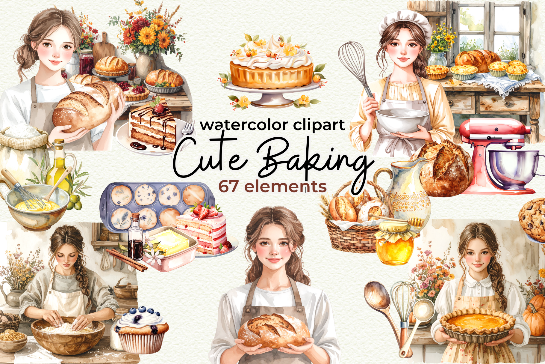 Add a touch of charm and coziness to your designs with this Cute Cottage Baking Watercolor Clipart Set. Featuring warm beige, cream, and soft brown tones, this collection includes adorable baked goods, mugs, utensils, and rustic kitchen elements in a versatile neutral palette. Perfect for both seasonal and evergreen projects, these illustrations bring a calming, minimalist aesthetic to any creation.