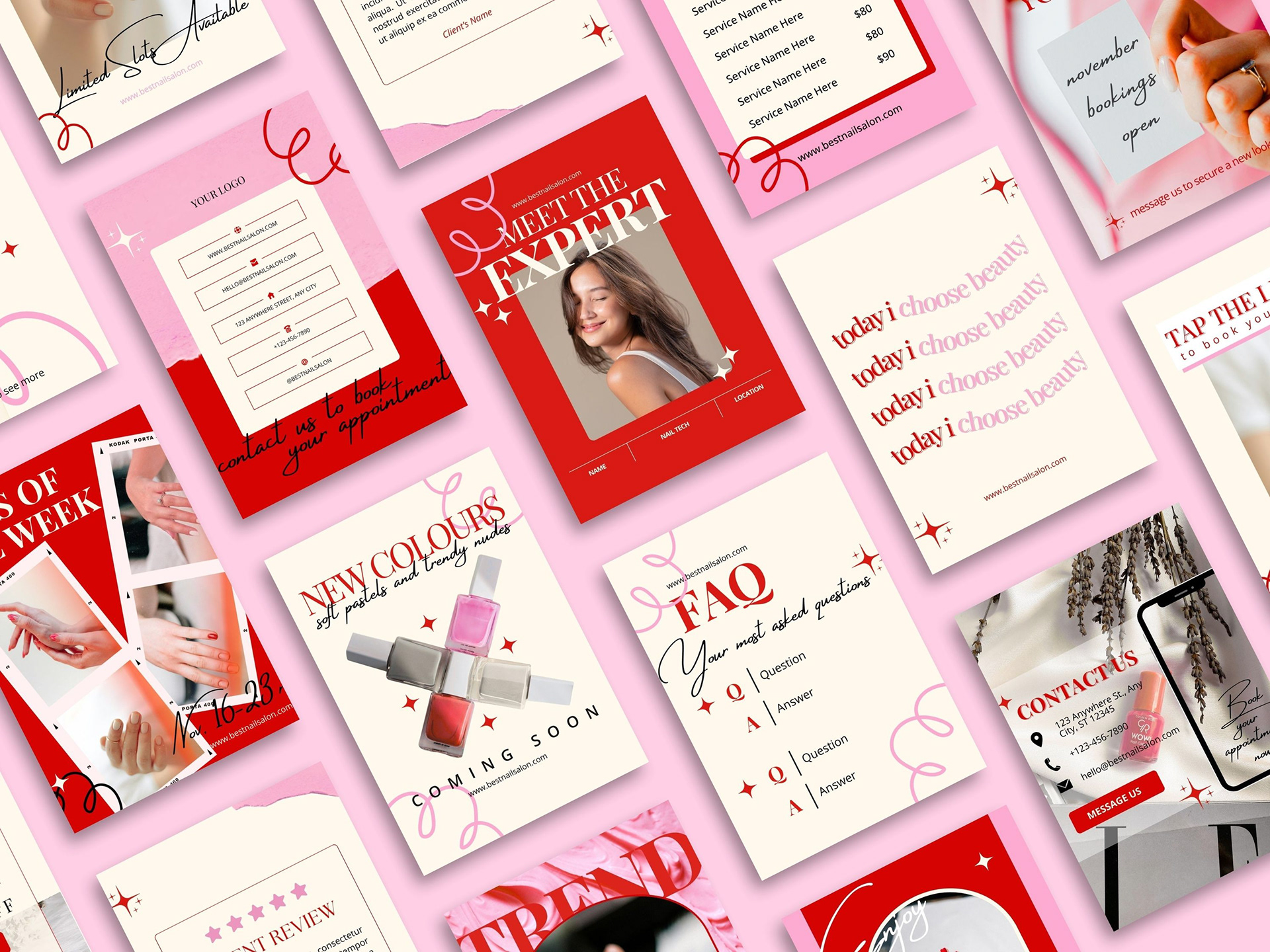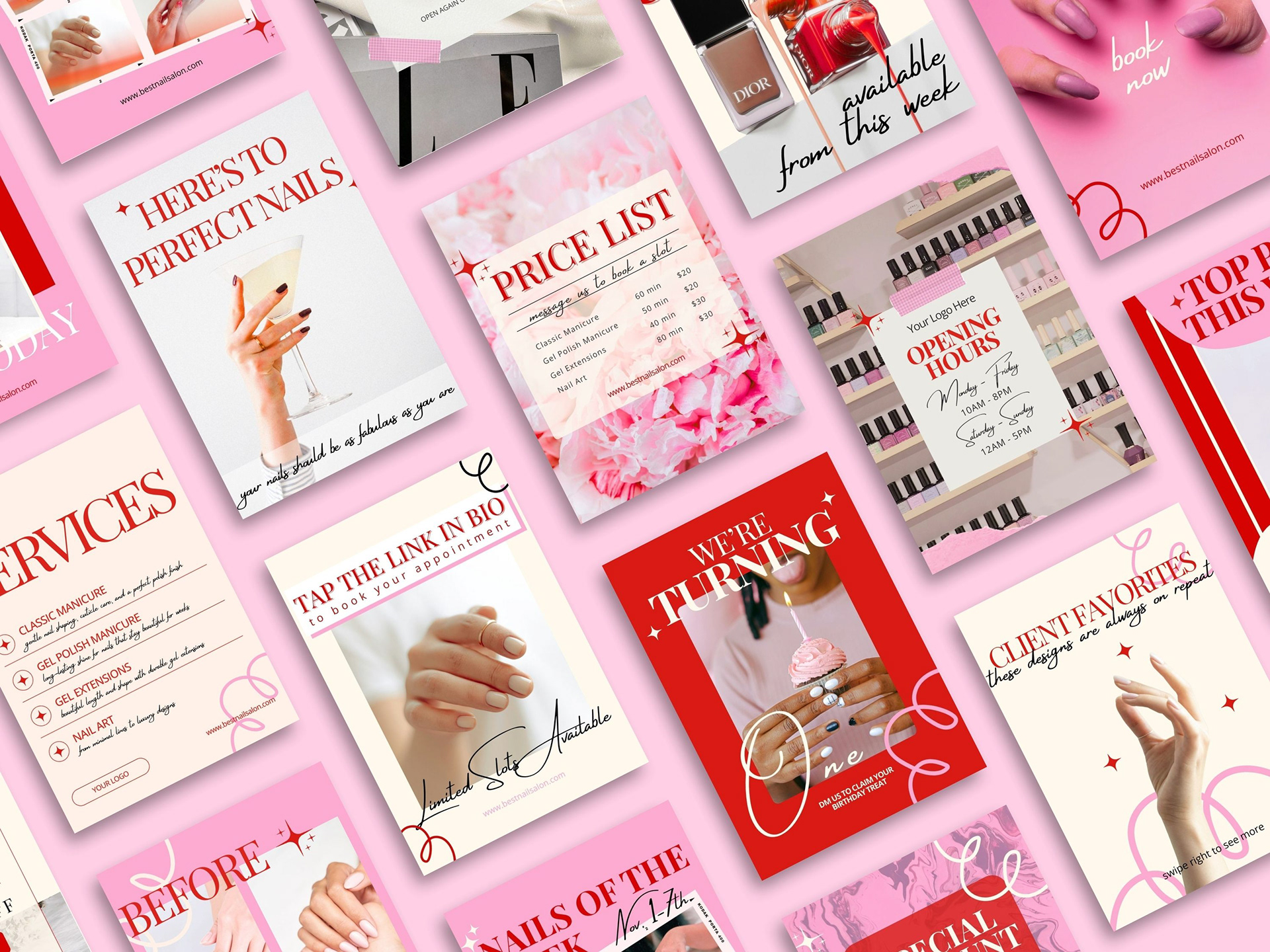 ○ Promotional layouts for services, pricing, nail designs and announcements