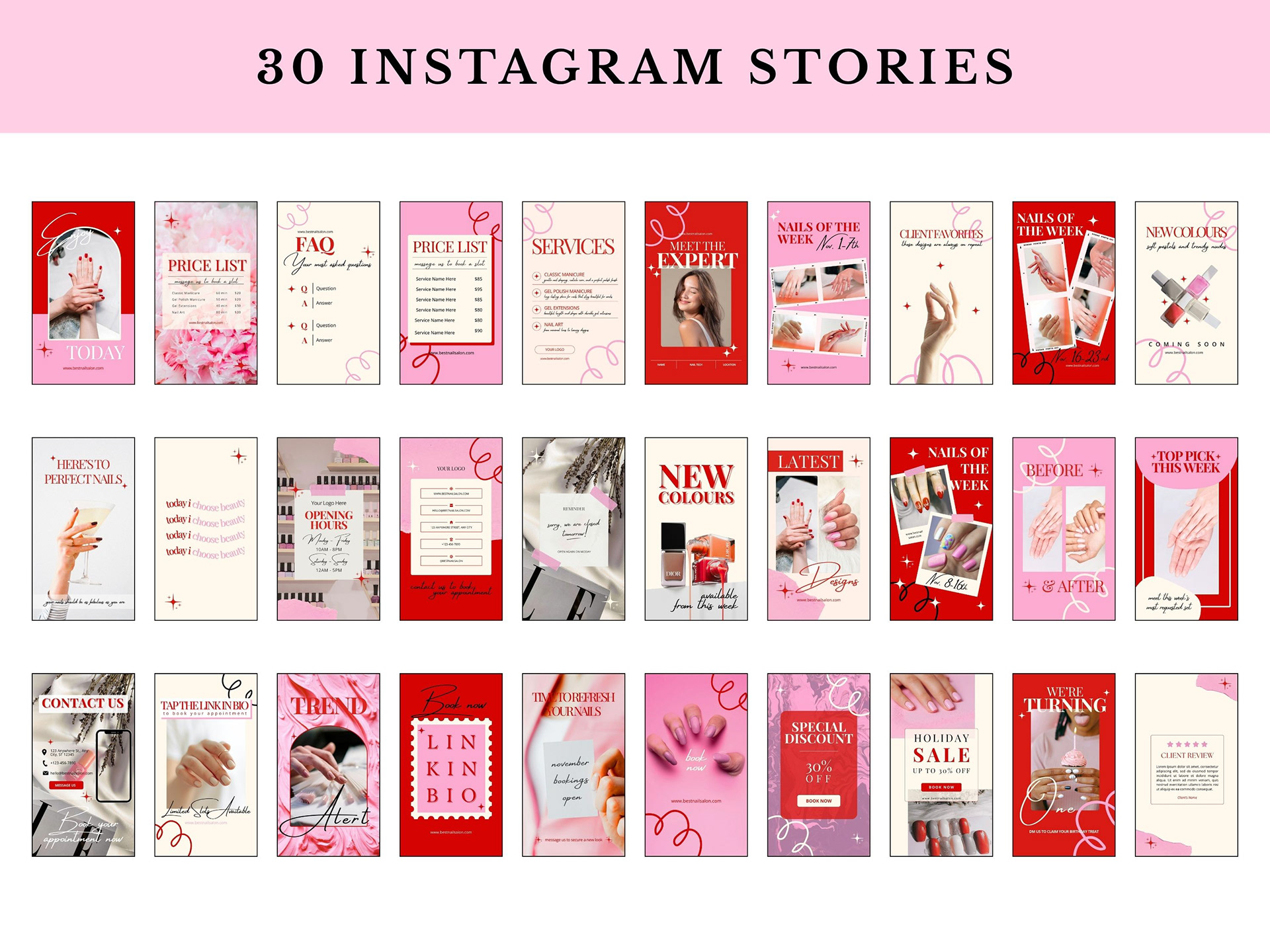 Modern Feminine Nail Salon Instagram Template Pack