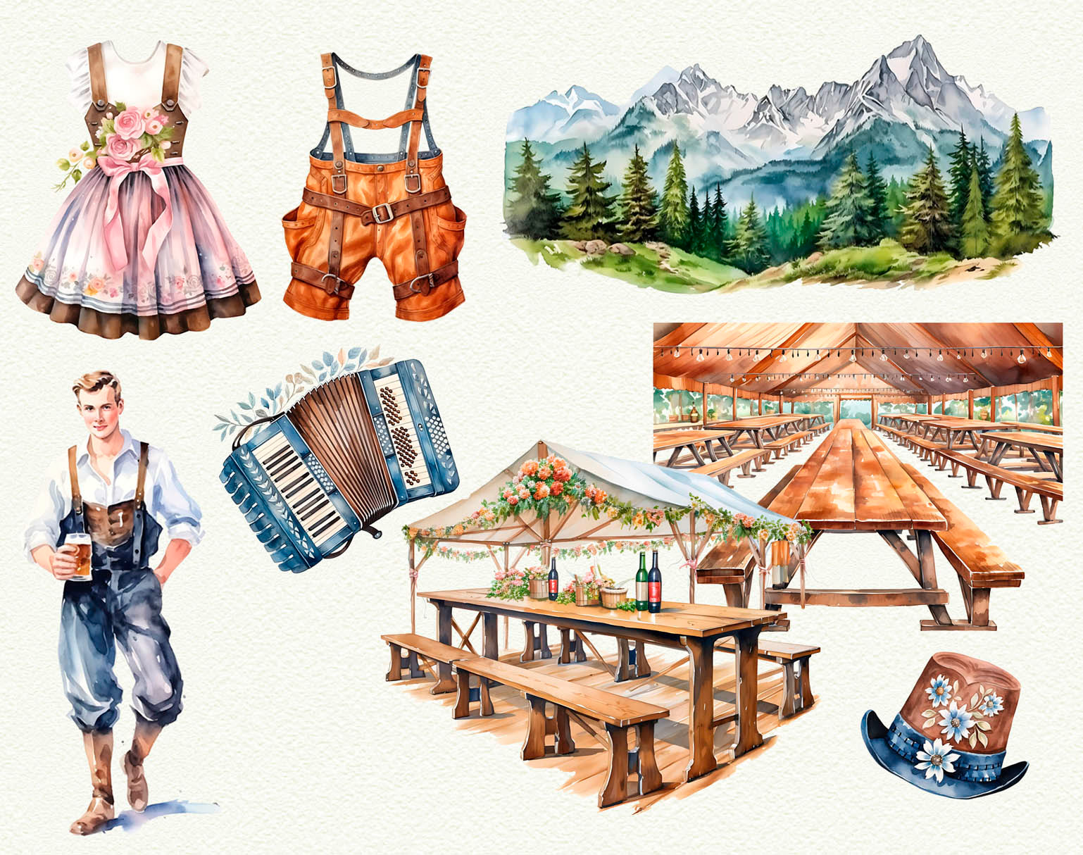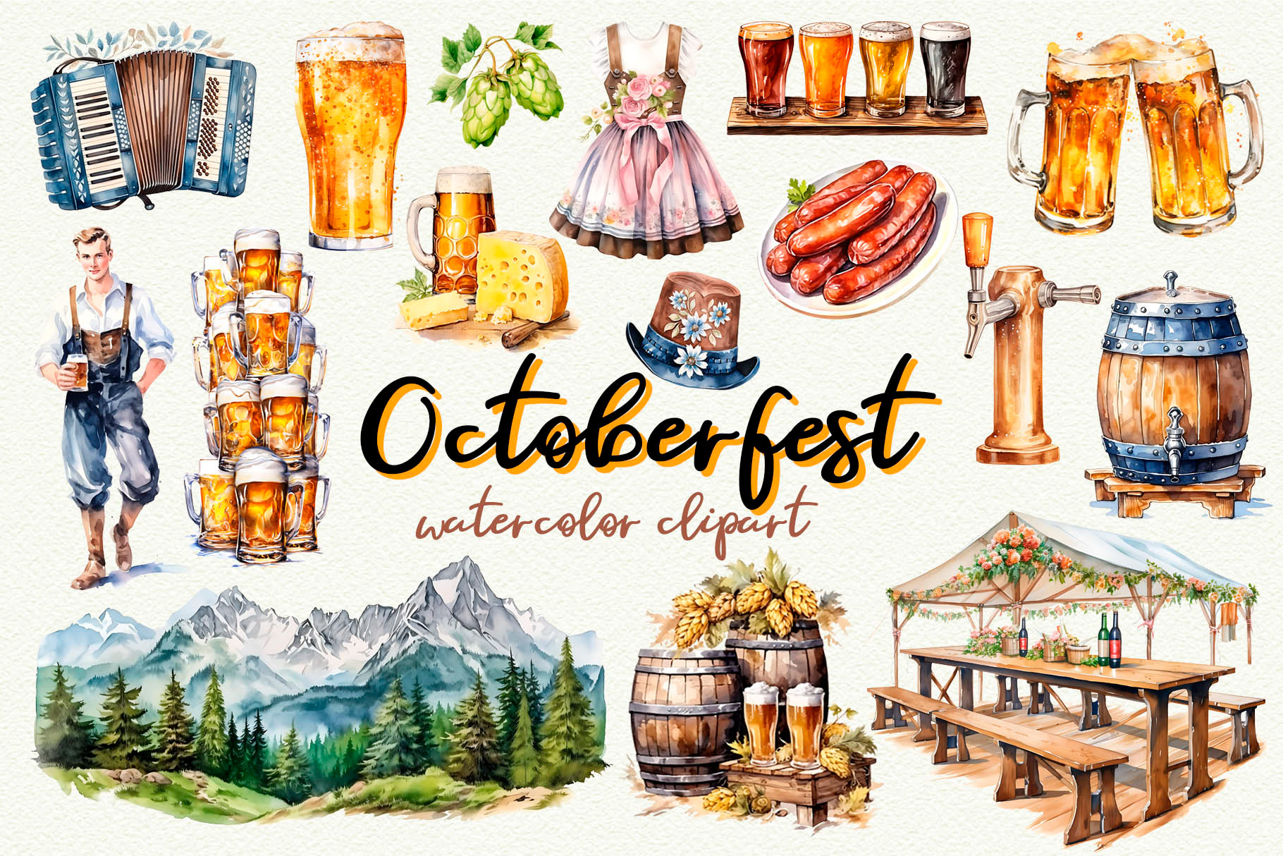 👉 Download here: Octoberfest Watercolor Clipart – Creative Market