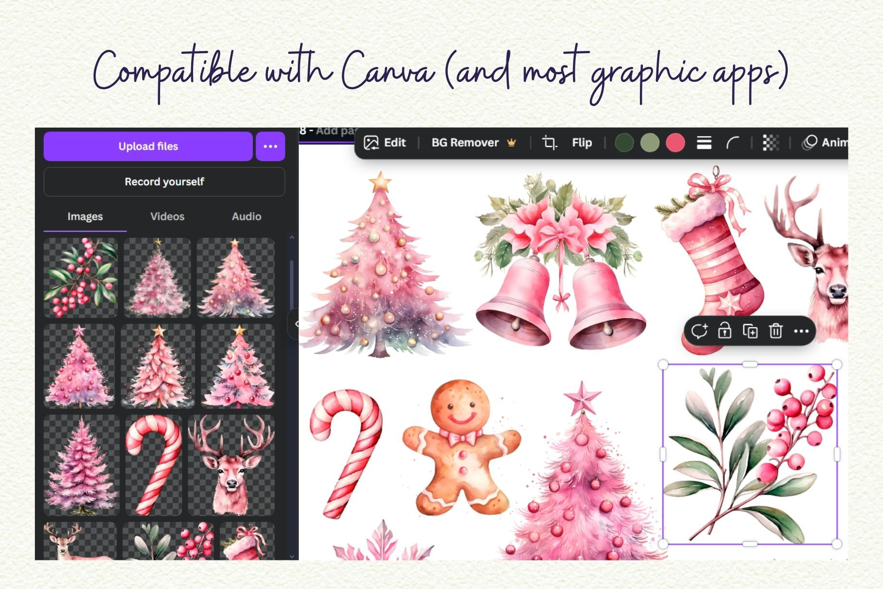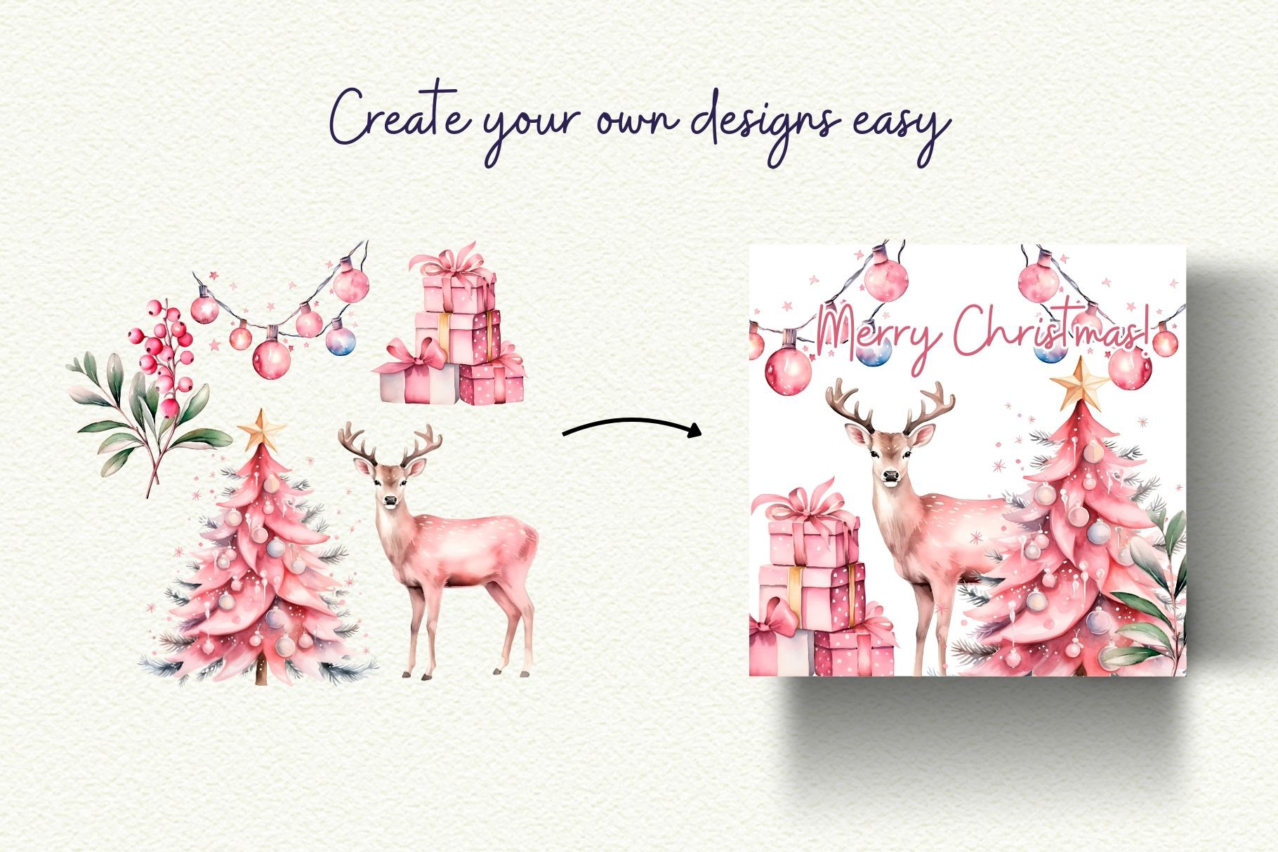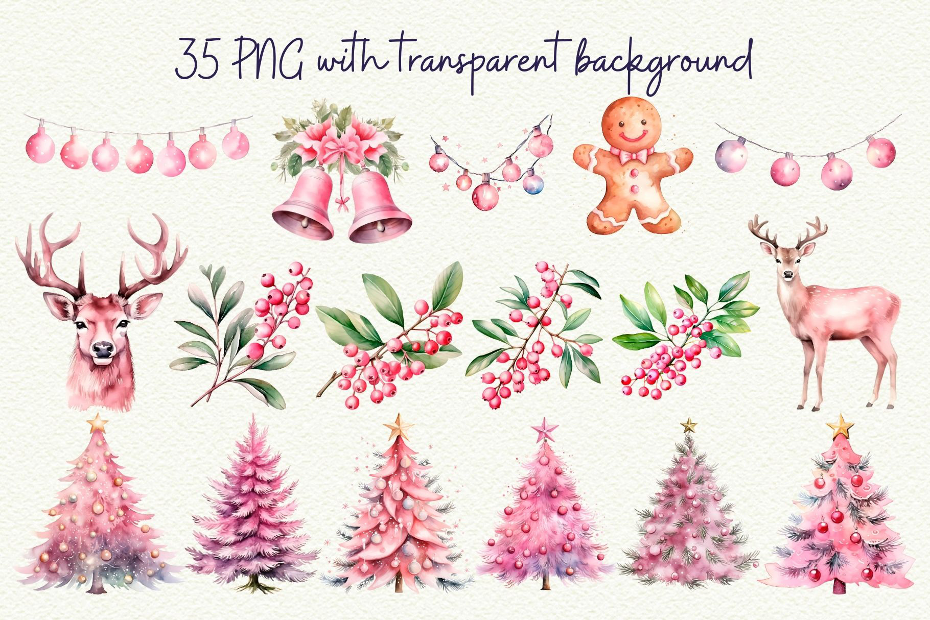This charming collection features cozy pink winter elements in a soft, romantic watercolor style β from decorated trees and pink Santas to dreamy decor. Perfect for seasonal printables, apparel and holiday branding.