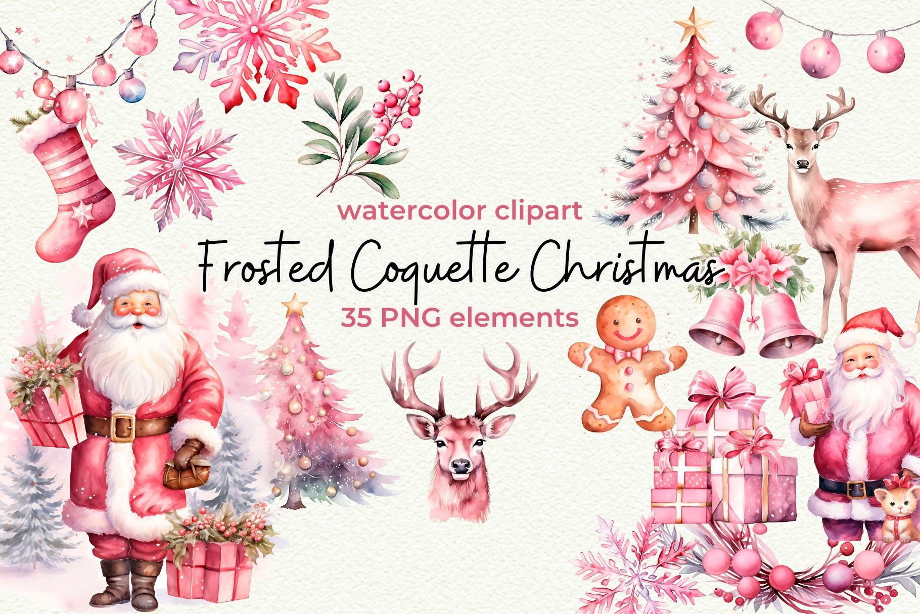 Celebrate the holidays in sweet pastel style with this Frosted Coquette Christmas Clipart Set!