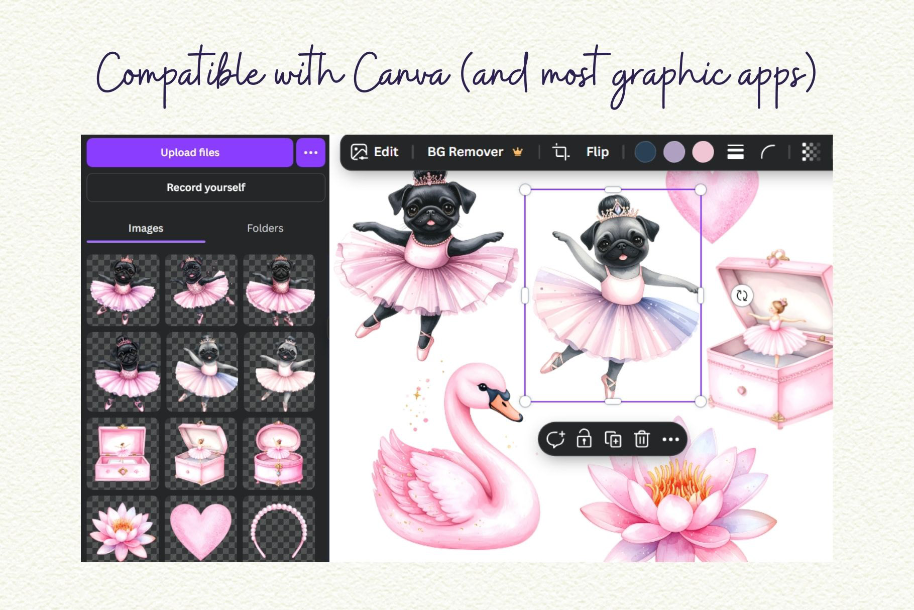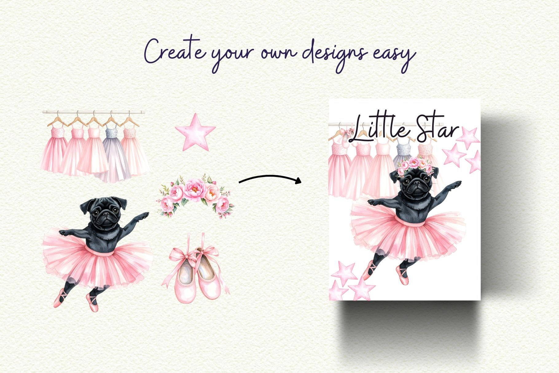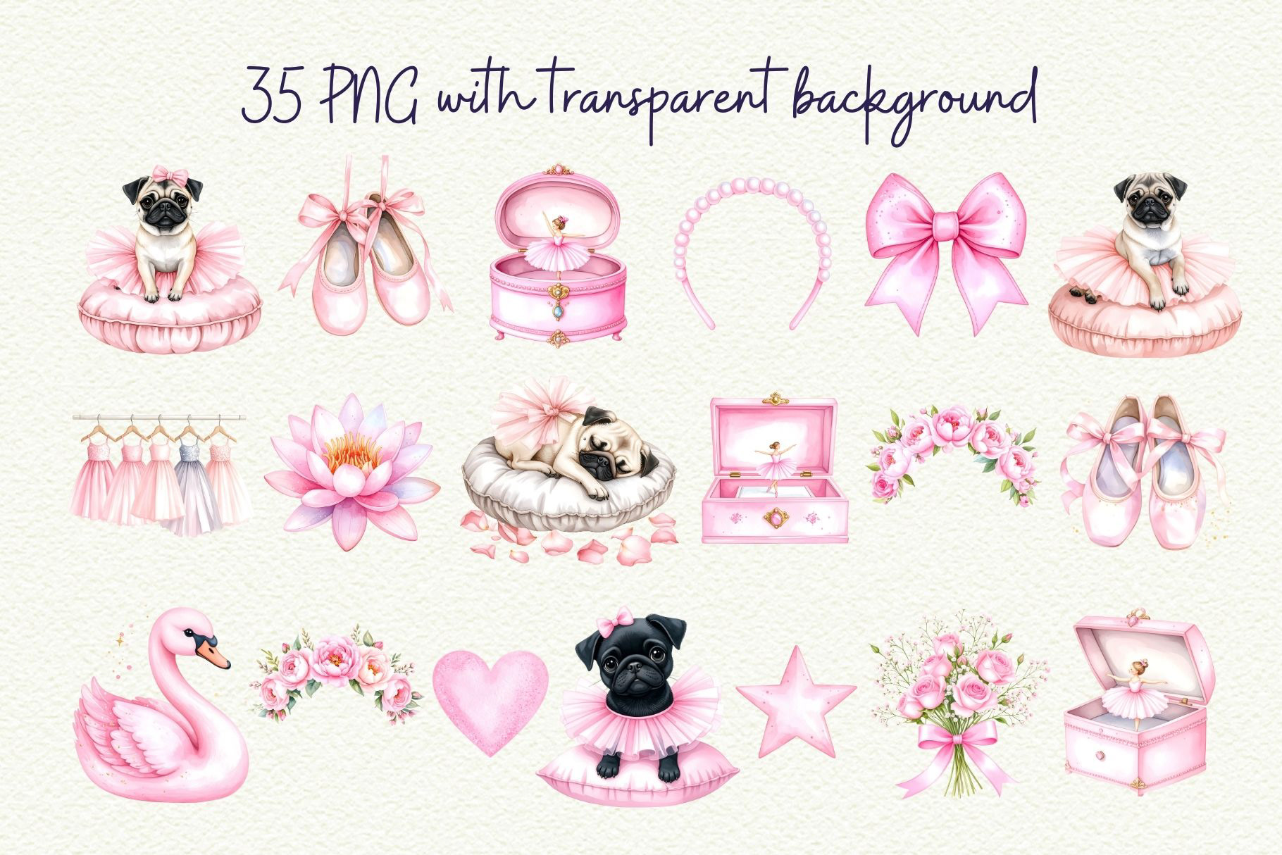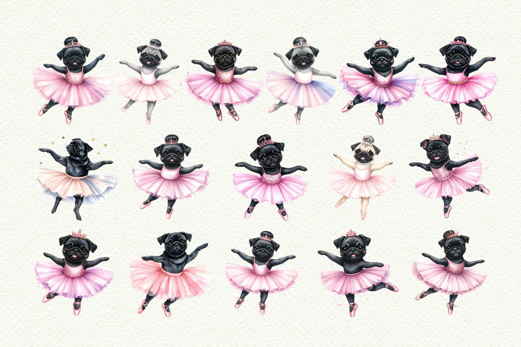 Full collection available in my shop → Pug Ballet Coquette Clipart